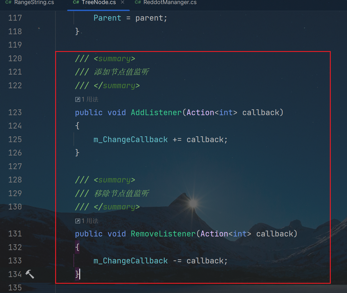 RemoveAllListener函数接口,移除所有的节点监听逻辑,就是把m_ChangeCallback这个Action功能回调,null即可