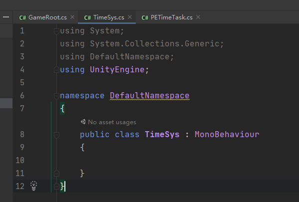 先新建一个空白工程,创建文件夹和三个脚本文件 简单命名一下,设置一下调用的命名空间
