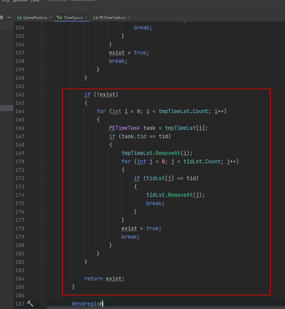 继续写一个删除任务的方法,传参是tid 首先弄一个布尔判断,遍历时间任务列表,如果tid匹配,就从任务列表移除,而且tid列表也移除,布尔判断设置为true