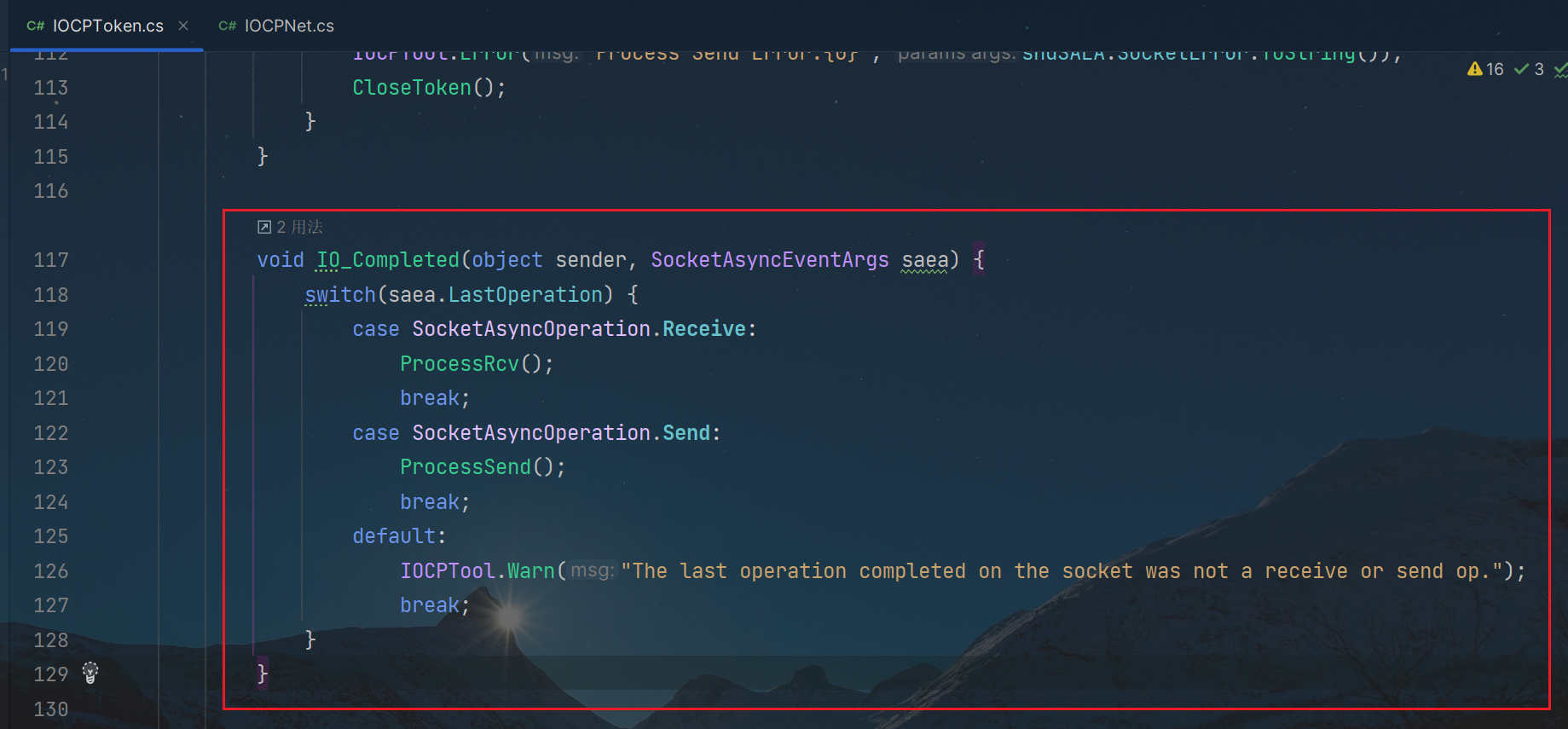 回顾一下,token连接的收发逻辑,都是在IO_Completed中,完成switch case的相关调用,对应也是加到了,SocketAsyncEventArgs异步套接字 rcvSAEA 和 sndSAEA 中