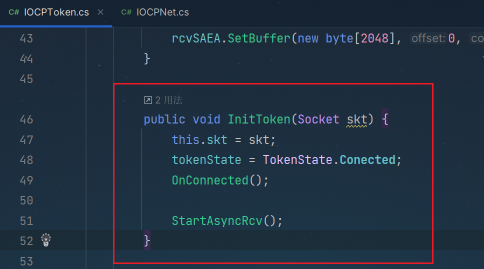 外部调用的,InitToken函数接口,就是token连接的初始化操作,对应逻辑,完成OnConnected的连接后,调用StartAsyncRcv函数接口,异步接送消息即可