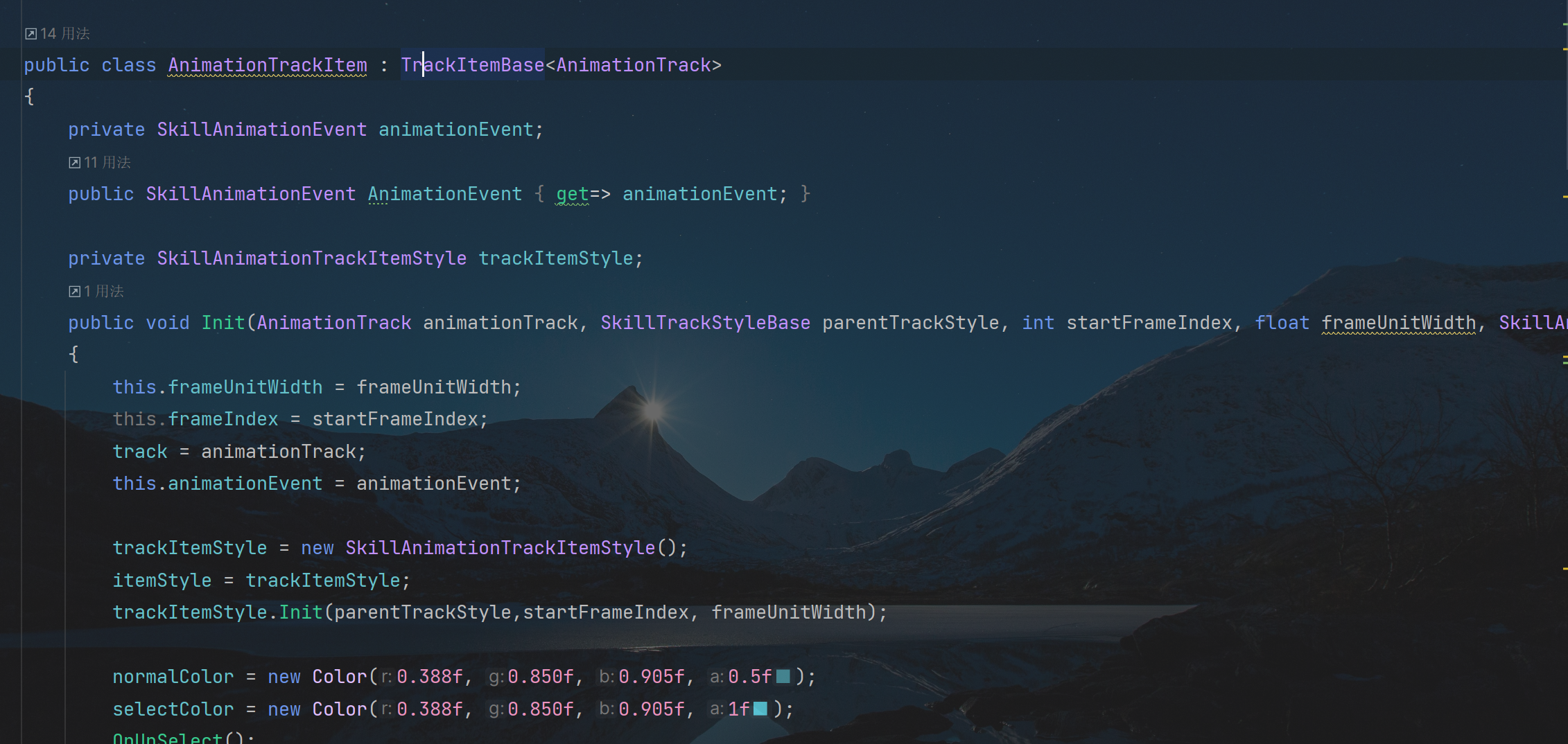 动画片段的交互逻辑; SkillAnimationTrackItemStyle的实例化,已经调用了对应的uxml显示文件,也设置了默认颜色,和选中颜色;