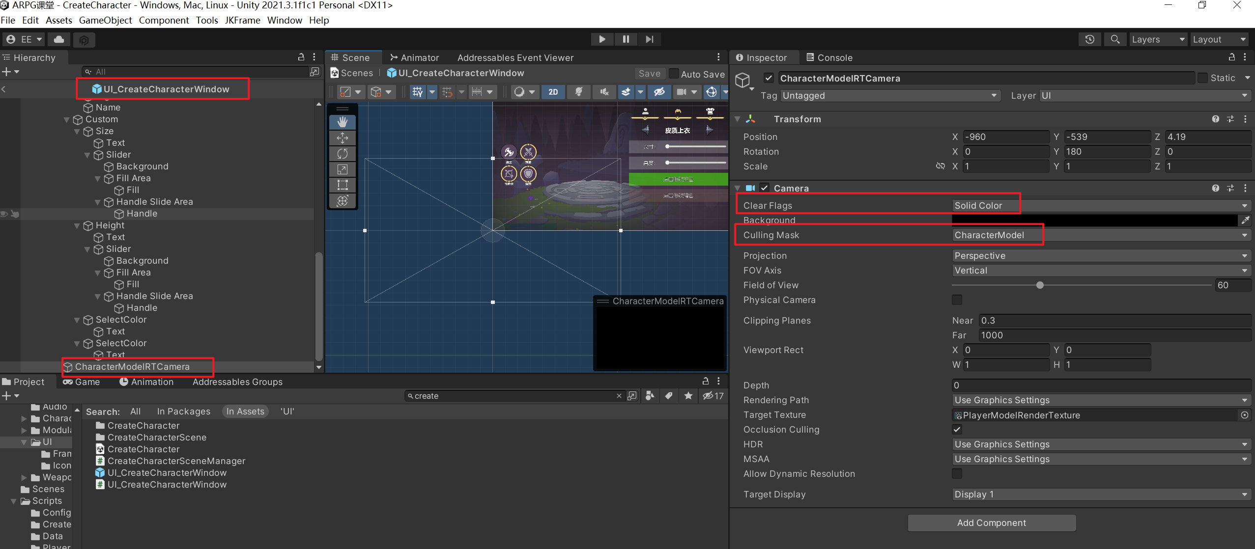 回到ui主体窗口,有一个渲染相机,就是只渲染这个层级的