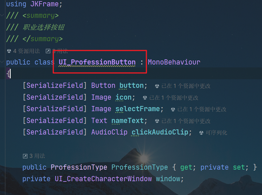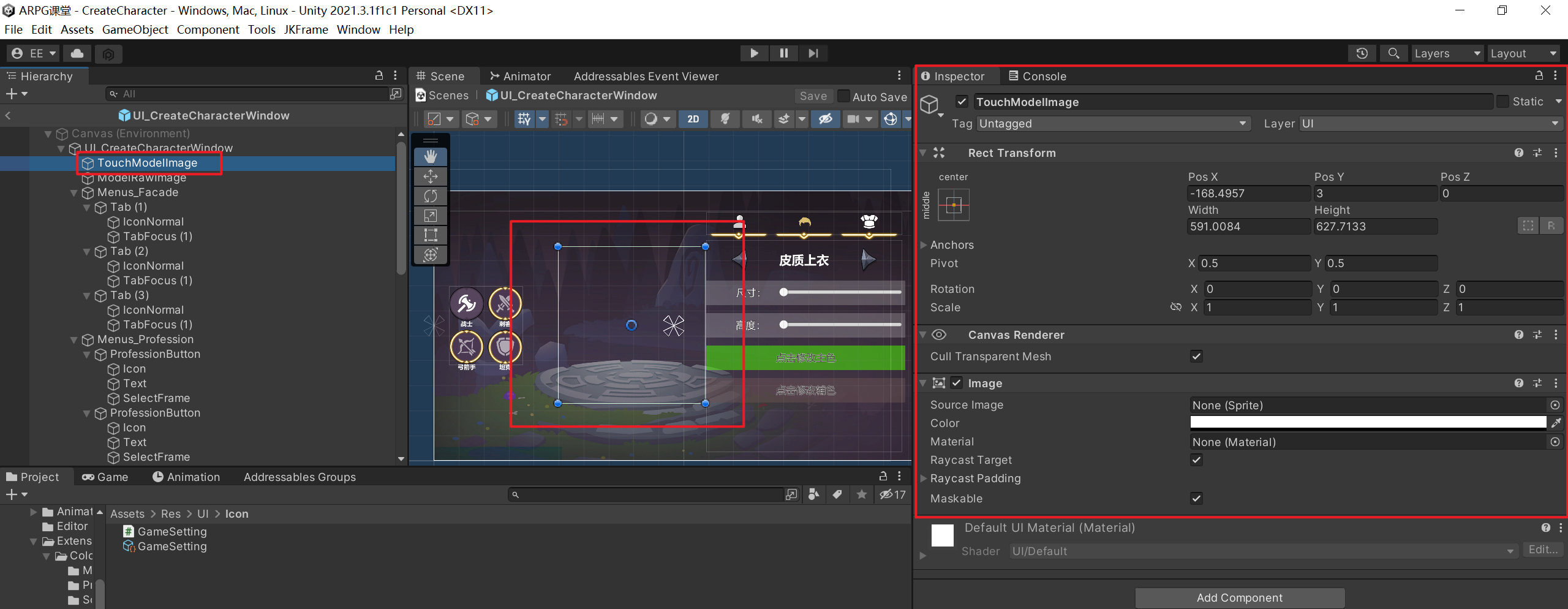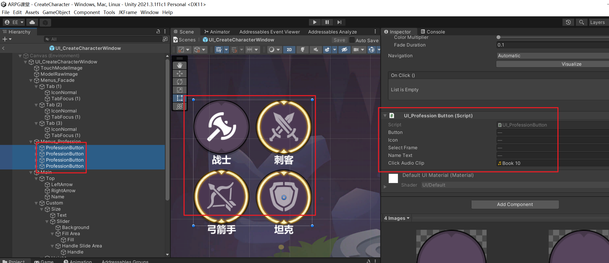 在资源管理,分析窗口,对应的预制体,和引用的相关ui图片