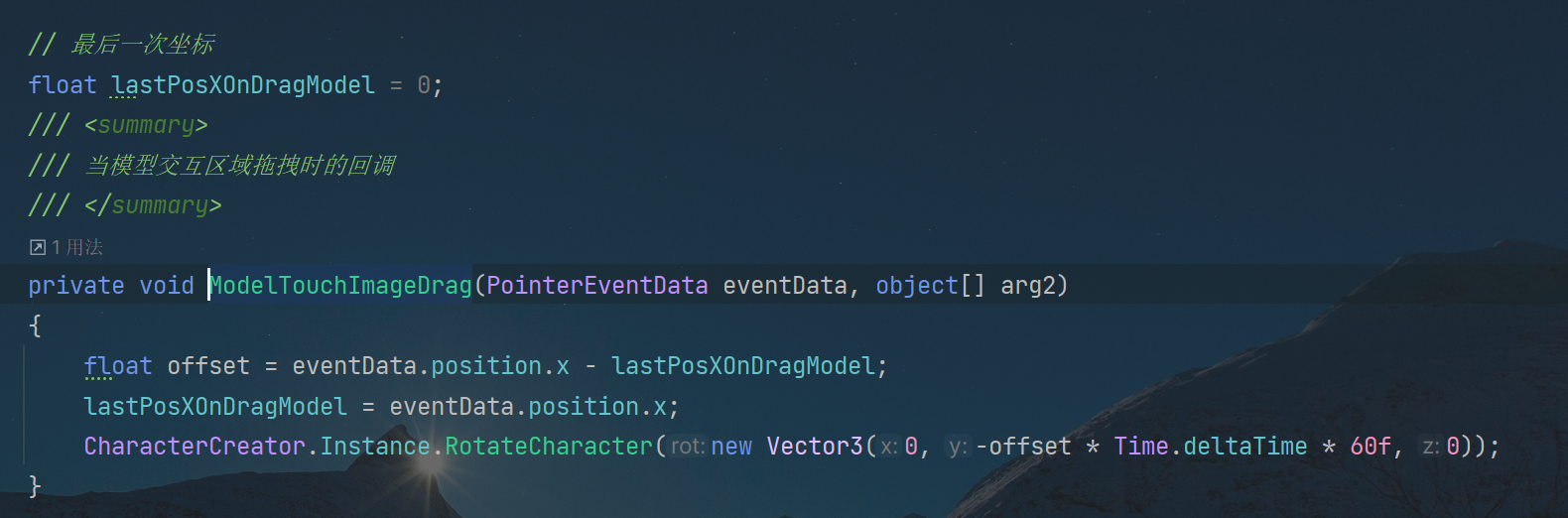 具体实现逻辑: 滑动位置,和最后一次拖曳位置相减,得到偏差,传递过去,旋转模型