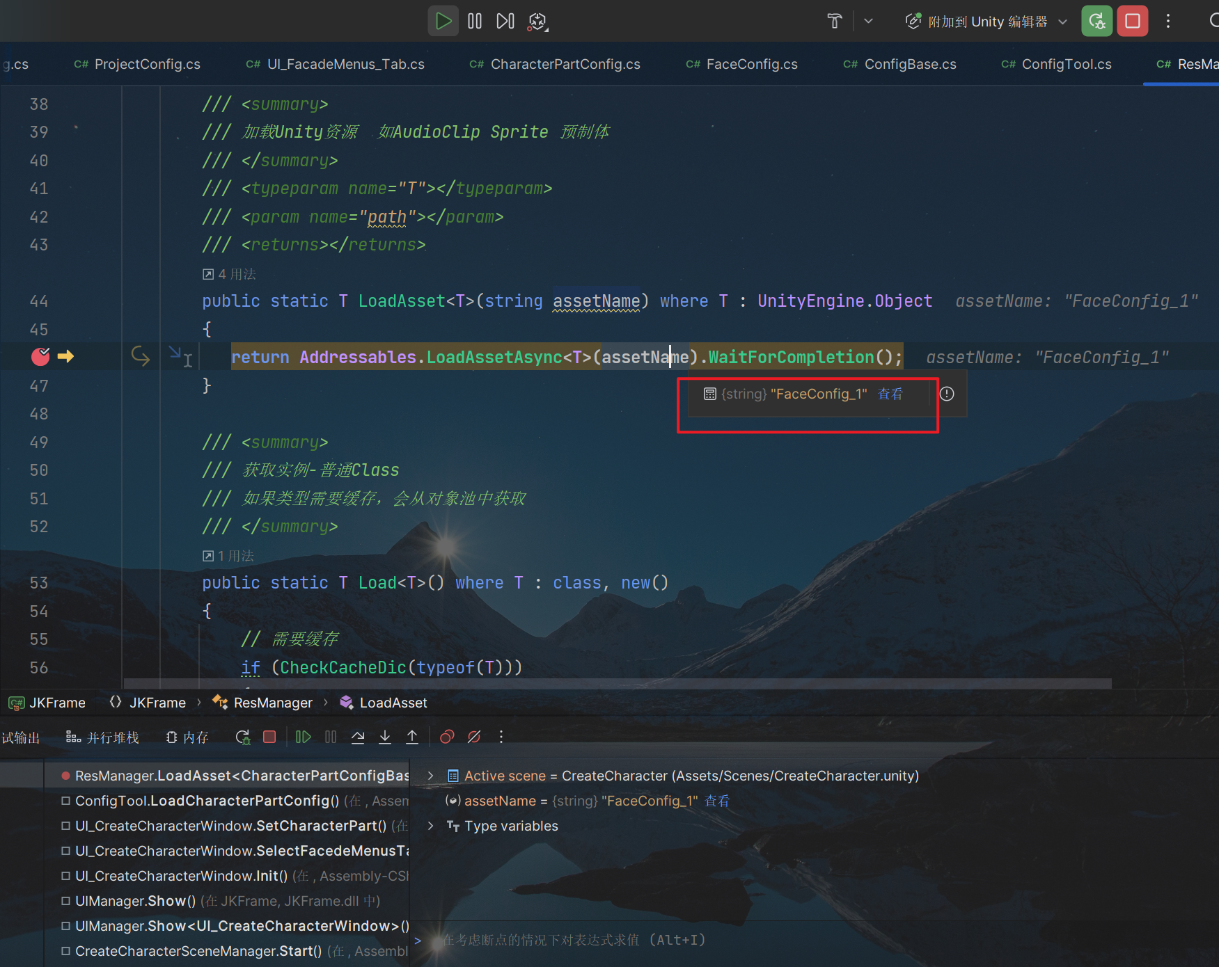 打断点,可以看到,就是传递一个配置相关的名字,就可以异步加载出来了
