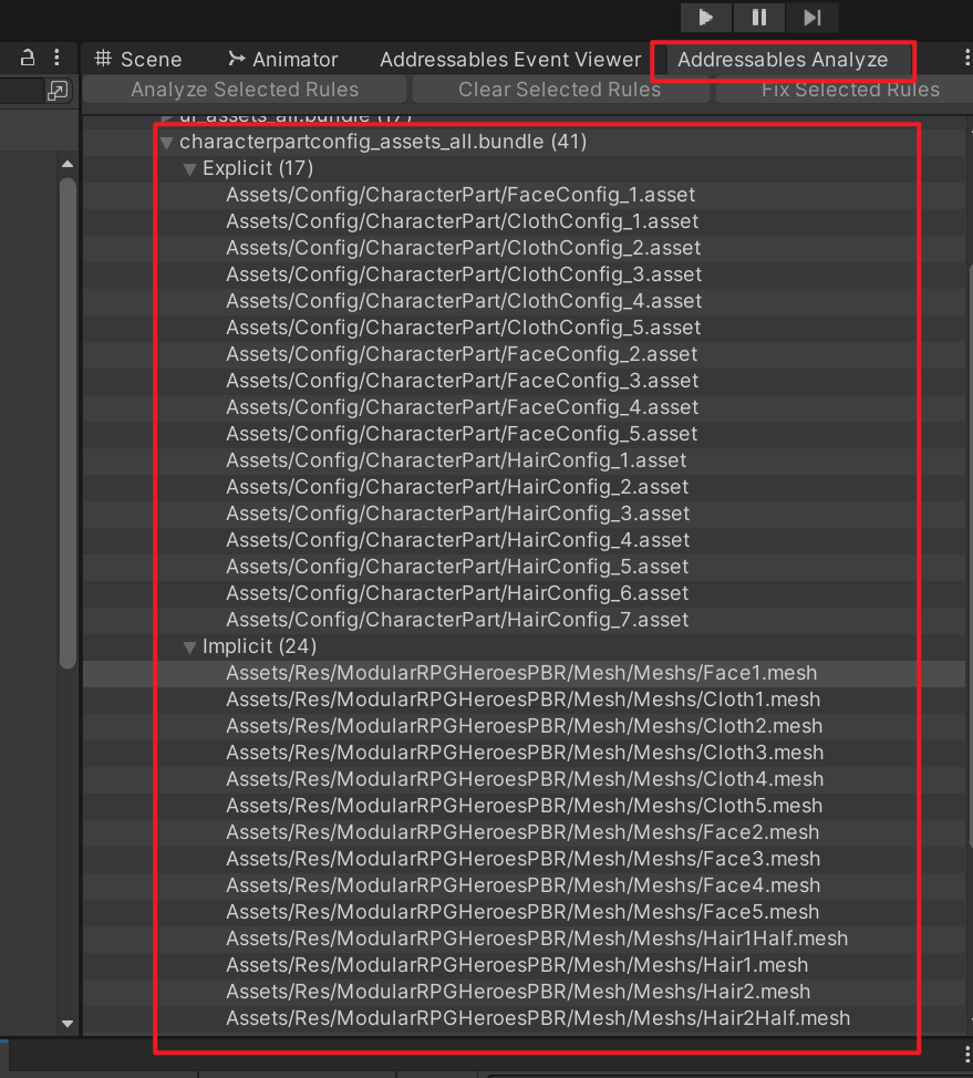 资源分析窗口,配置文件,和mesh纹理之间,相关引用关系