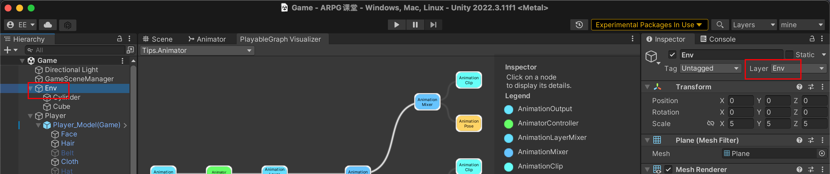 有可能存在,摄像头被环境,挡住的情况; 先添加一个layer层级,设置给Env环境