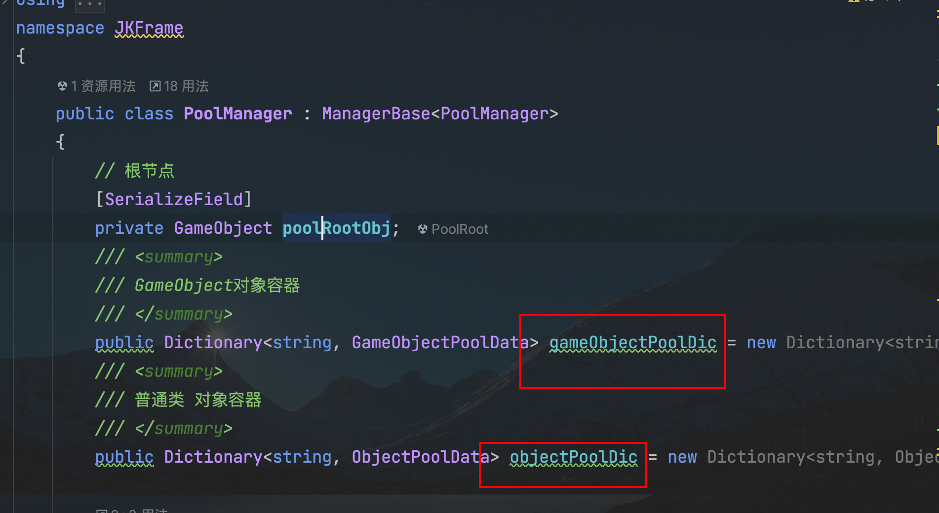 回到对象池管理器,游戏对象字典,和普通对象字典,也是分开管理即可
