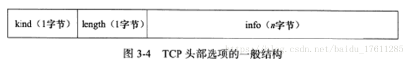 TCP头部选项:TCP头部的最后一个选项字段(options)是可变长的可选信息。这部分最多包含40字节,因为TCP头部最长是60字节(其中还包含前面讨论的20字节的固定部分)。典型的TCP头部选项结构如下图所示。