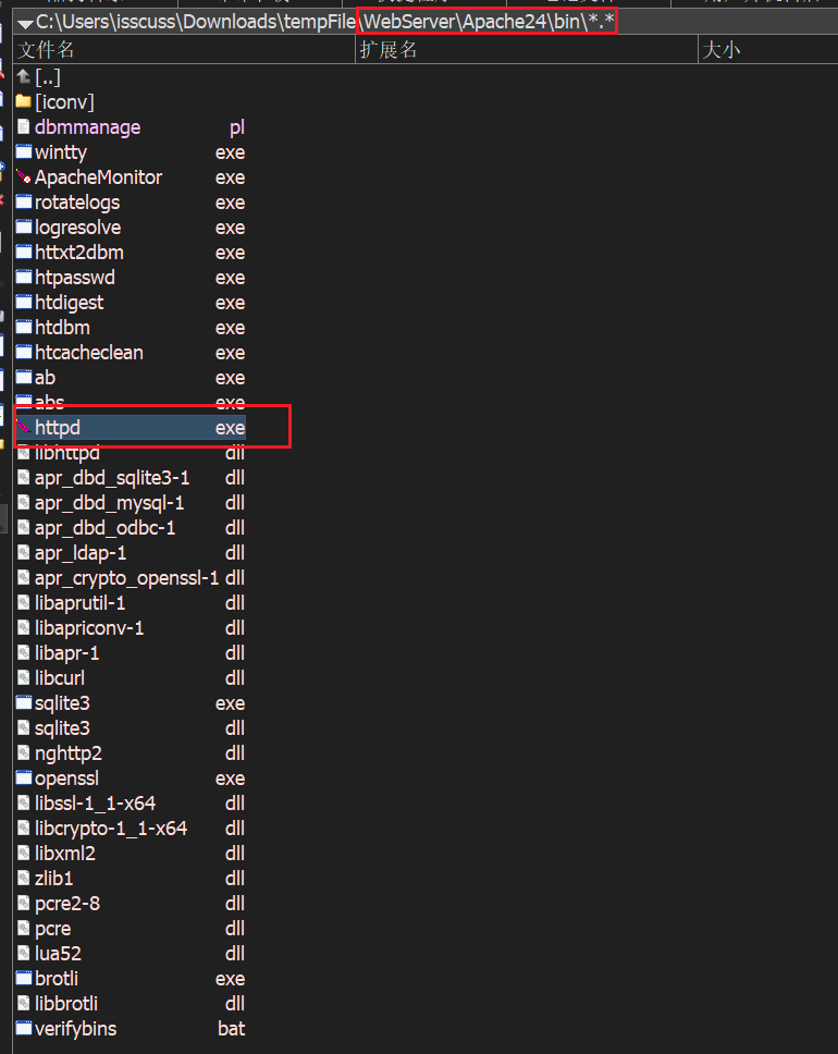 确认,Apache服务器的bin文件夹,存在可执行文件httpd.exe